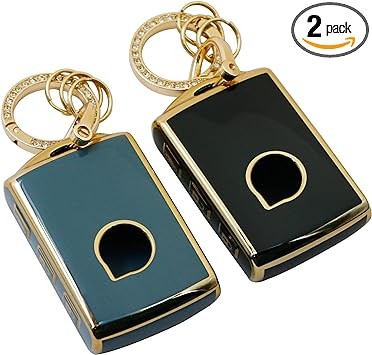 2 Pcs for Volvo Key Fob Cover XC90 XC60 S60 XC40 Keyless Full Covered Key Protector Shell TPU Fashion Golden Edge Key Case (V-(Black grey)-B)