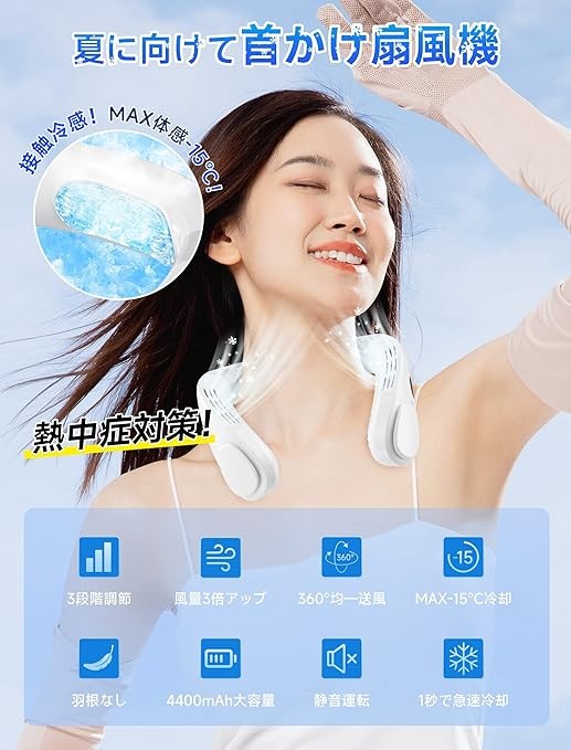 2024 Summer Innovation Cooling Neck Cooler, Neck Fan with Cooling Plate, Instant Cooling, 3 Stage Adjustment, No Blades, 360 Degree Surround Style, Neck Cooler, Portable, Lightweight, 4,400 mAh, Large