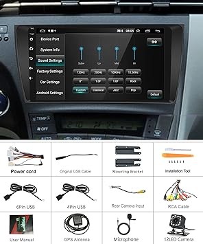 Android Car Stereo Radio for Toyota Prius 2010 2011 2012 2013 2014 2015 with GPS Navigation, Rimoody 9 Inch Touch Screen Car Radio with Bluetooth FM WiFi Mirror Link + Backup Camera