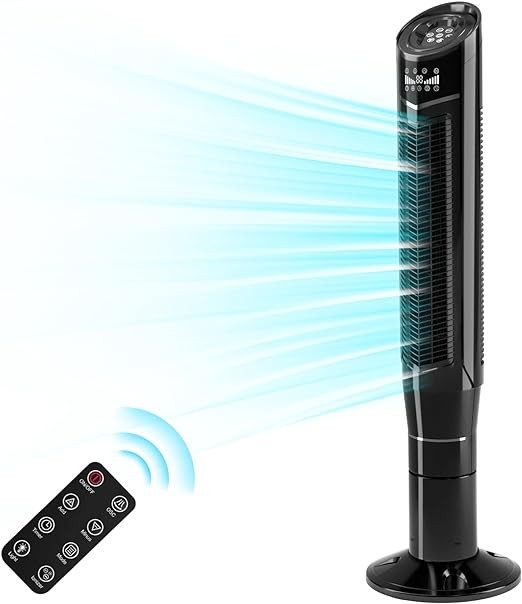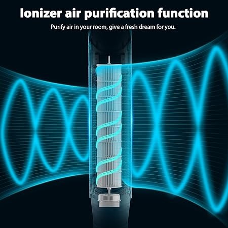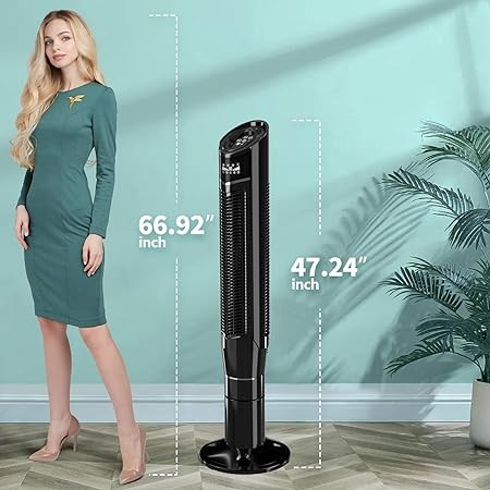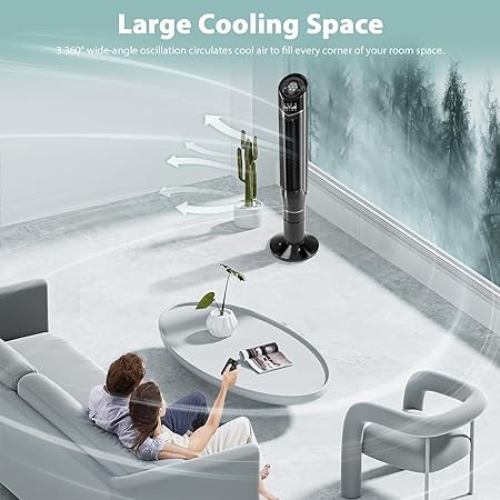 Antarctic Star Tower Fan 360°Oscillating Fan Quiet Cooling 24H Timer Remote Control Powerful Standing 8 Wind Speed 3 Wind Modes Ionizer Bladeless Portable LED Display,Bedroom Office47-Inch black