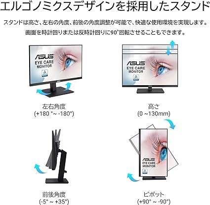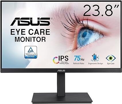 ASUS Eye Care VA24EQSB Monitor, 23.8 Inches, Full HD, 1920 x 1080, IPS Frameless, 75Hz, Adaptive-Sync, Blue Light Reduction, Flicker-Free, Height Adjustment, Vertical,