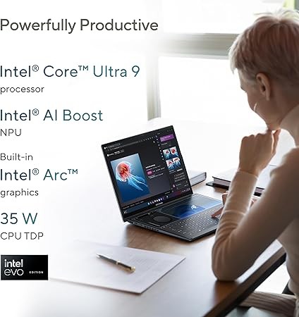 ASUS Zenbook Duo Laptop, Dual 14” OLED 3K 120Hz Touch Display, Intel Evo Certified, Intel Core Ultra 9 185H CPU, Intel Arc Graphics, 32GB RAM, 1TB SSD, Windows 11, Inkwell Gray, UX8406MA-PS99T