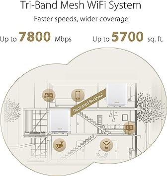 ASUS ZenWiFi XT9 AX7800 Tri-Band WiFi6 Mesh WiFiSystem (2Pack), 802.11ax, up to 5700 sq ft & 6+ Rooms, AiMesh, Lifetime Free Internet Security, Parental Controls, 2.5G WAN Port, UNII 4, White