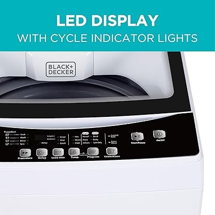 BLACK+DECKER Small Portable Washer, Washing Machine for Household Use, Portable Washer 2.0 Cu. Ft. with 6 Cycles, Transparent Lid & LED Display