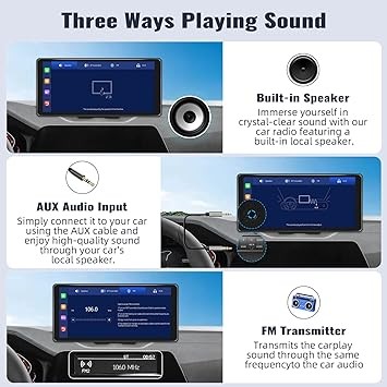 CAMECHO 10.36 Inch Portable Car Stereo Full HD Touchscreen CarPlay Screen with Wireless CarPlay Android Auto Bluetooth Hands-Free Backup Camera 64G Card Support Mirror Link, FM, GPS, Aux Input