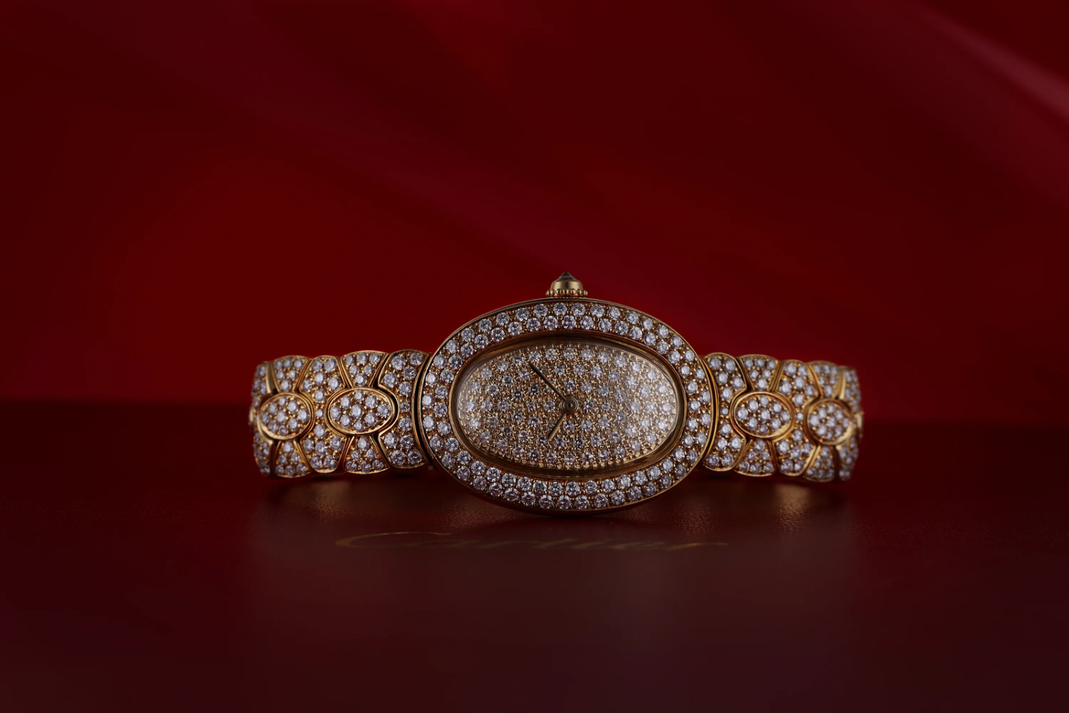 Cartier Baignoire Full Pave Diamond Ladies Watch REF. 1950 1 18k Yellow Go