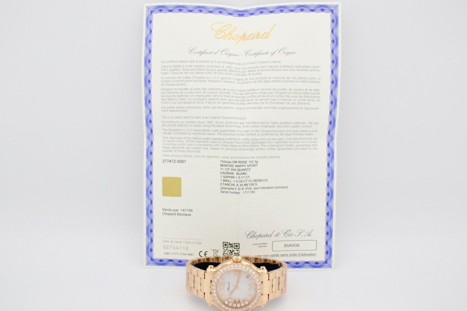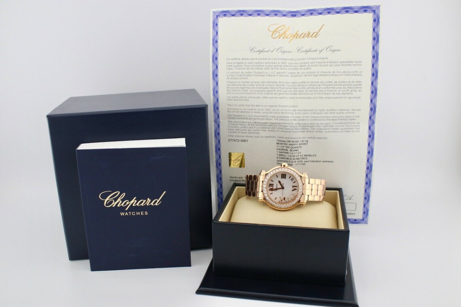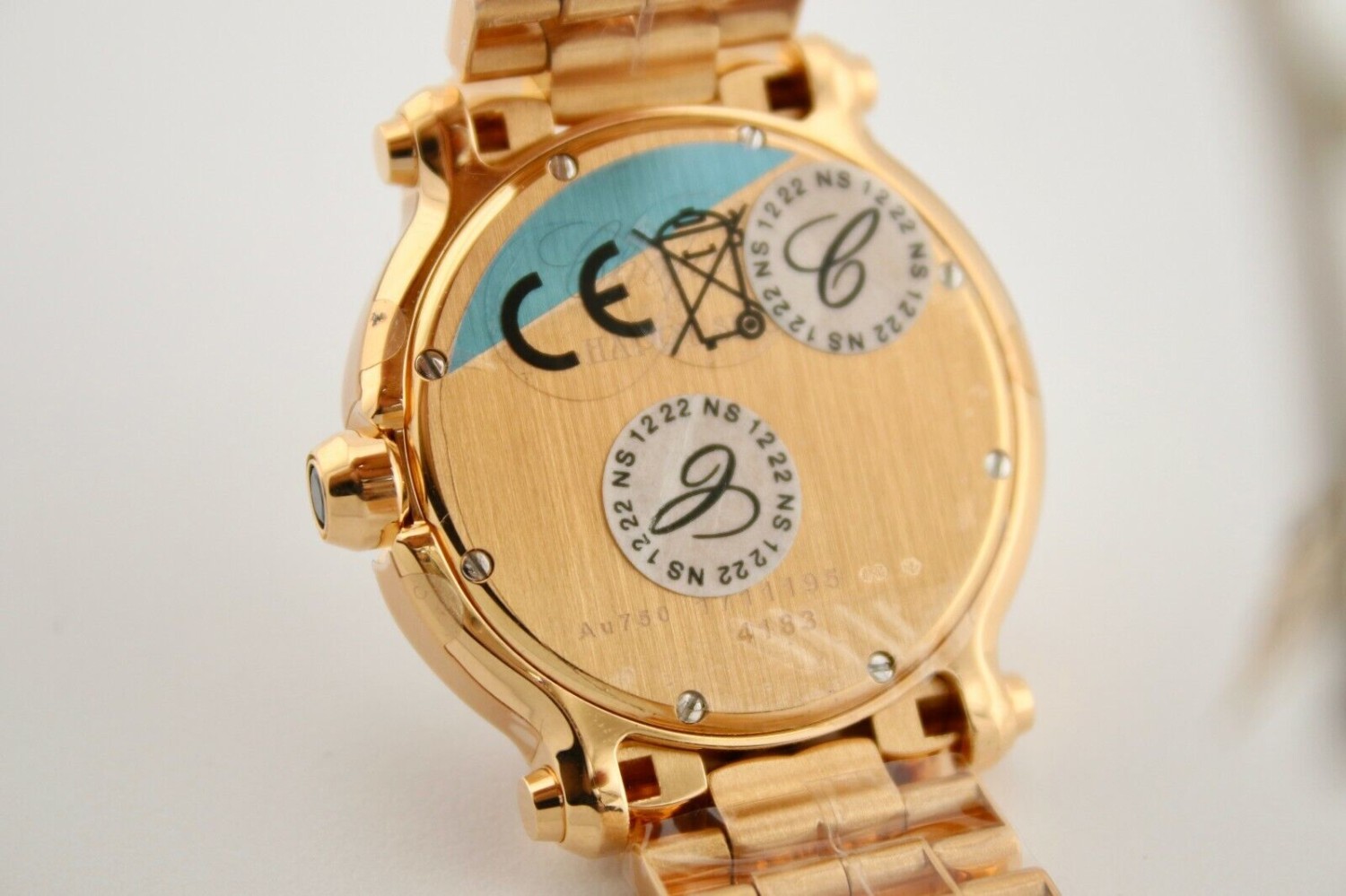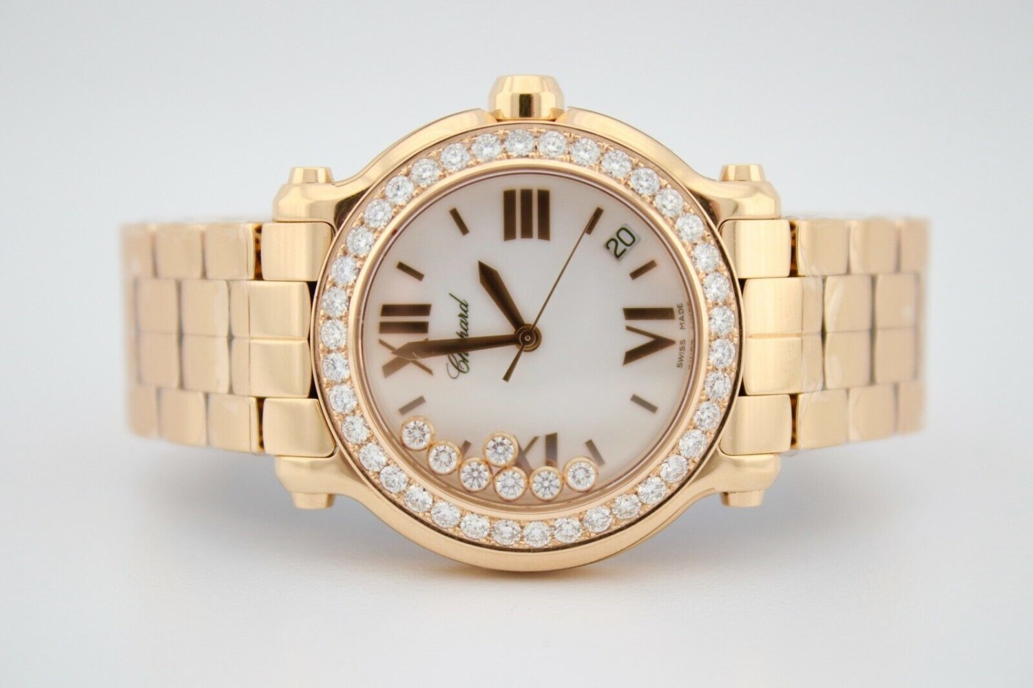 CHOPARD HAPPY SPORT ROUND 18K ROSE GOLD DIAMOND ENCRUSTED WATCH REF277472-5001