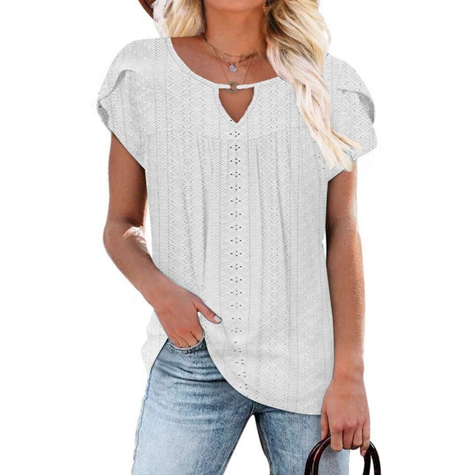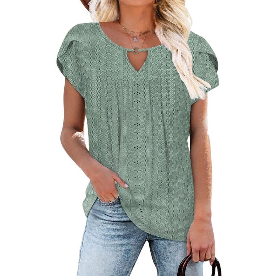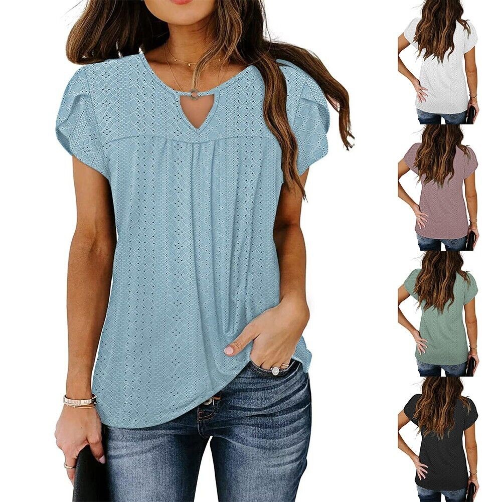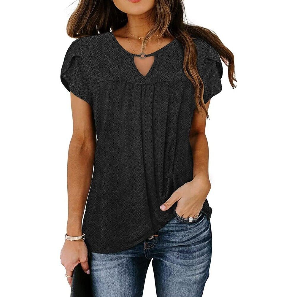 Comfortable Women's Top with Short Petal Sleeves and Soft Pleated Fabric