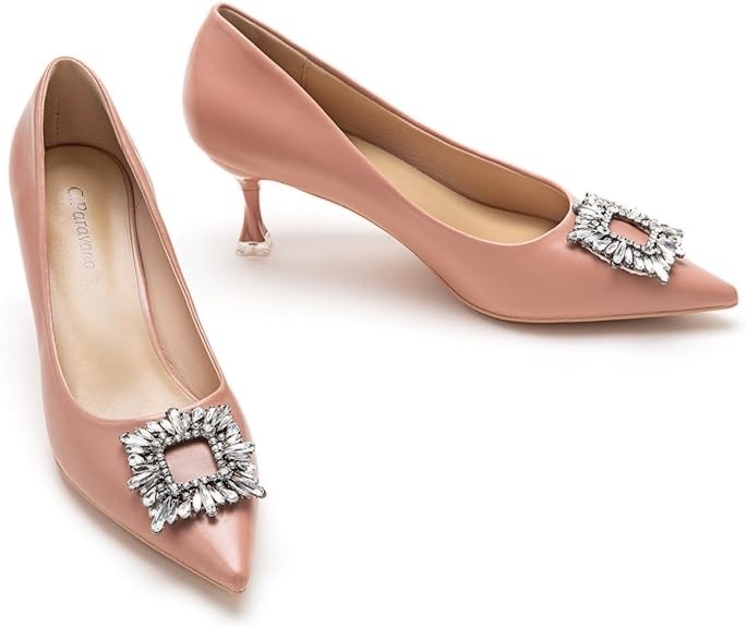 C.Paravano Women's Pumps I Pointed Toe High Heels I Closed Toe Kitten Heel I Comfortable Dress Pump I Leather Wedding Shoes