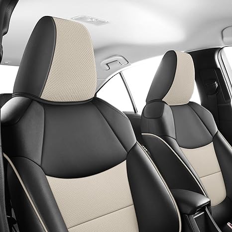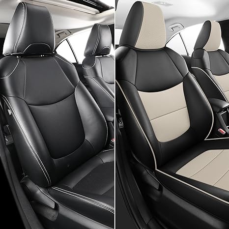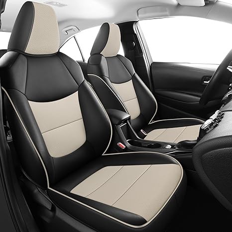 Custom Fit Car Seat Cover for Select 2019 2020 2021 2022 Toyota Corolla L LE LE Eco XLE Sedan - Full Set with Water-Resistant Breathable Microfiber Leather (Black and White)
