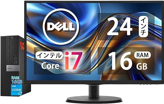 Dell Core-i7 & 24-inch LCD PC Set] intel Core i7-7700, RAM 16GB, SSD 512GB, Full HD (1920x1080) LCD MonitorOptical Drive5.8Ghz WI-FIBluetoothWindows11 Pro & KINGSOFT WPS OfficeDeskt