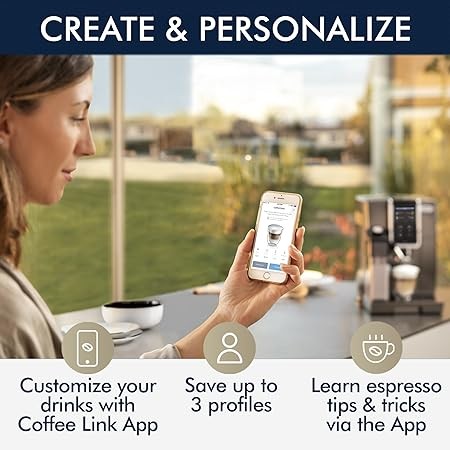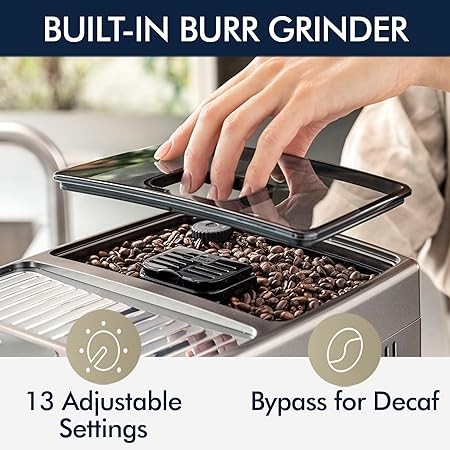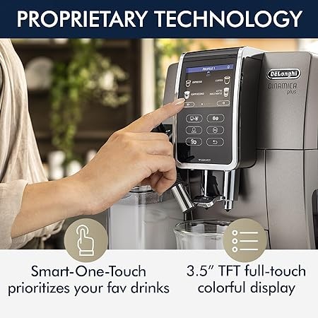 De'Longhi ECAM37095TI Dinamica Plus Connected with LatteCrema System, Fully Automatic Coffee Machine, Colored Touch Display,Titanium