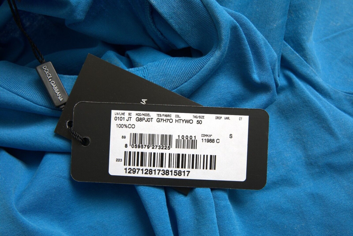 DOLCE & GABBANA T-shirt Blue Logo Print Short Sleeve Cotton IT50US40L