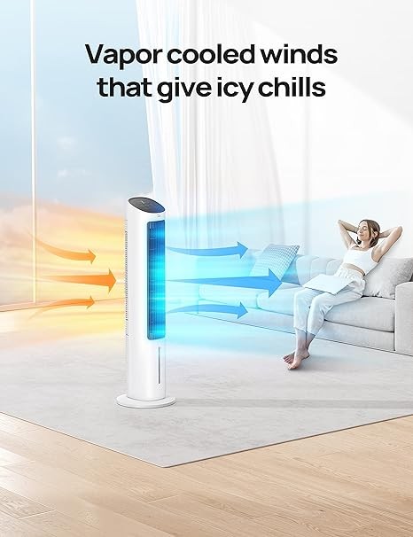 Dreo Evaporative Air Cooler, 40” Cooling Fans that Blow Cold Air, 80° Oscillating, Removable Water Tank, Ice Packs, Remote Control, 4 Speeds, 7H Timer, Swamp Cooler for Bedroom, White