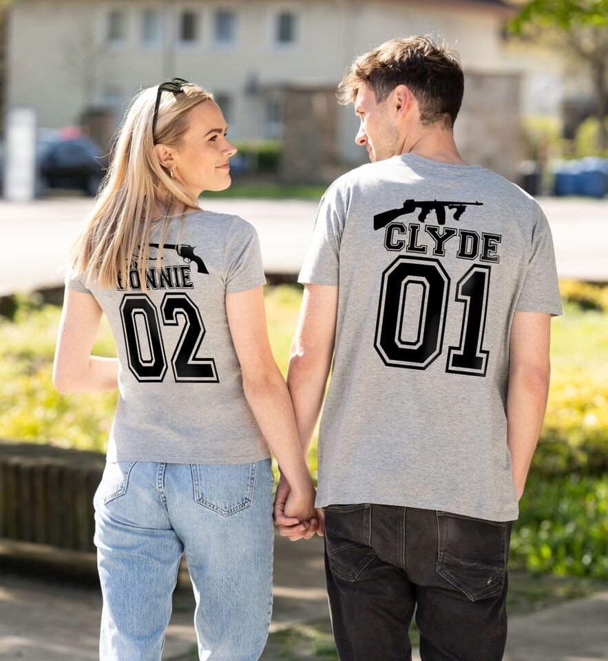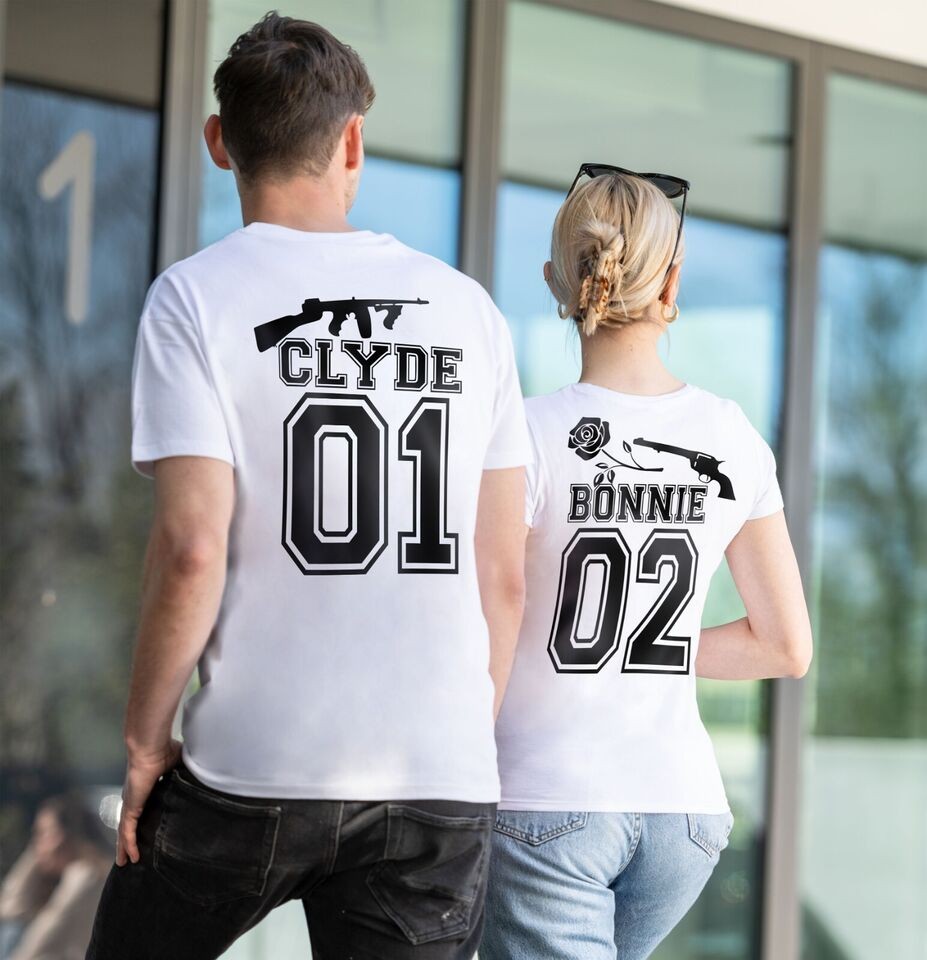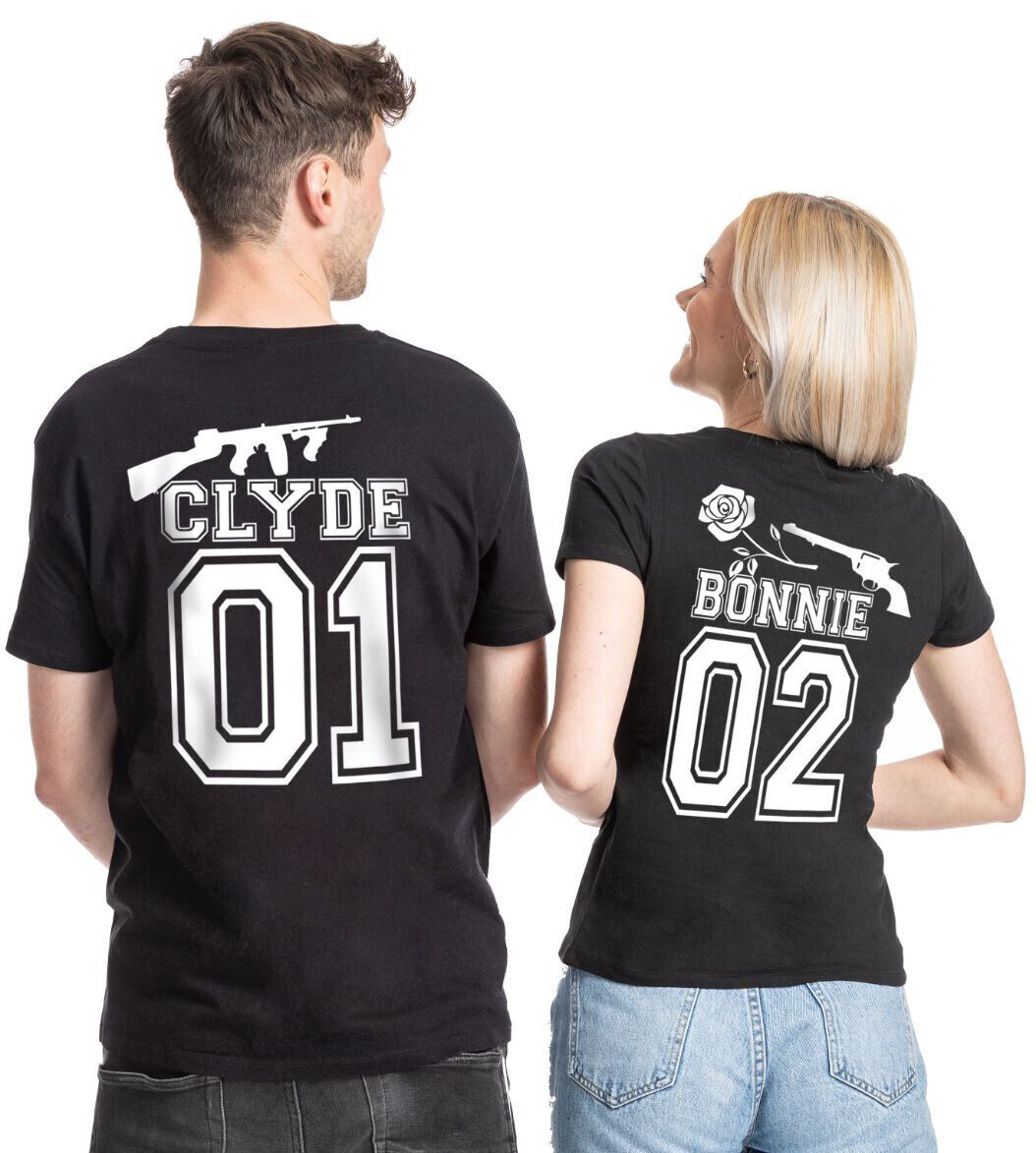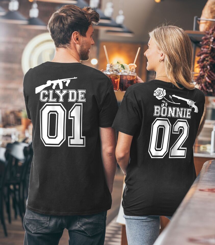 Gangster Pair Clyde Bonnie Couple Partner Pair T-Shirt Shirt King Que en SET