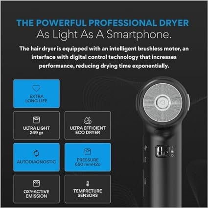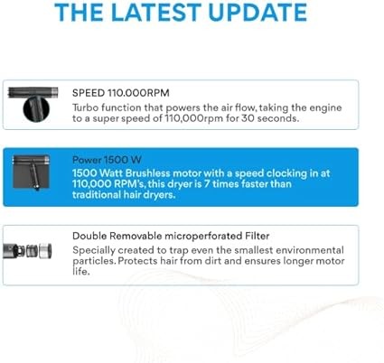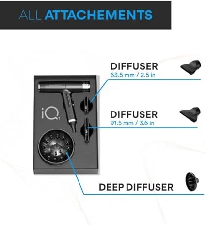 IQ1 Perfetto Professional Hair Dryer by Ga.Ma Italy 2023 Update 1500 Watts Turbo 110.000 RPM Washable Filter (Black)