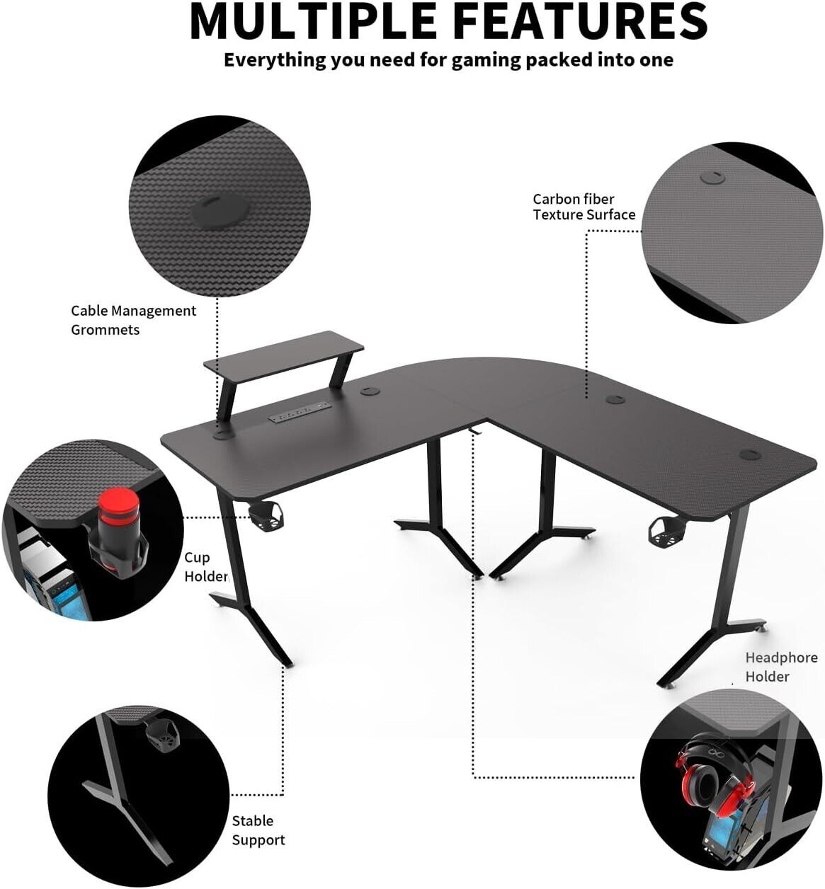 L-Shaped Gaming Desk Corner Table Computer Desk with RGB Light & Power Outlets