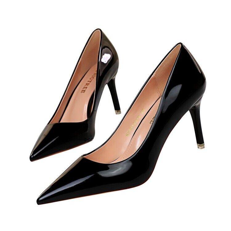 Ladies Club Party Shoes Metallic Synthetic Leather High Heels Pumps UK Size S601