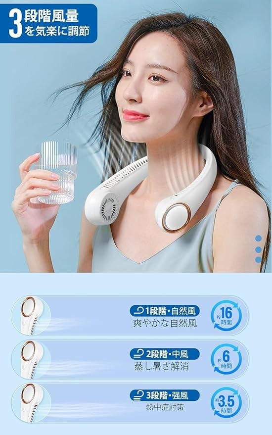Neck Fan, 2024 New Neck Fan, Portable Fan, Bladeless, 16 Hours of Continuous Usage, 3 Levels of Air Flow Adjustment, Handsfree, 4,000 mAh, Large Capacity, USB Rechargeable, Silent, Lightweight, Easy