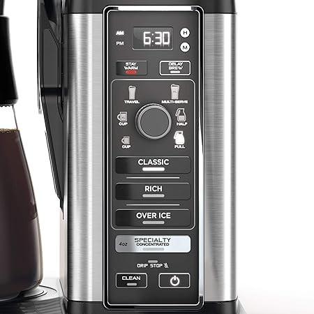 Ninja CM401 Specialty 10-Cup Coffee Maker with 4 Brew Styles for Ground Coffee, Built-in Water Reservoir, Fold-Away Frother & Glass Carafe, Black
