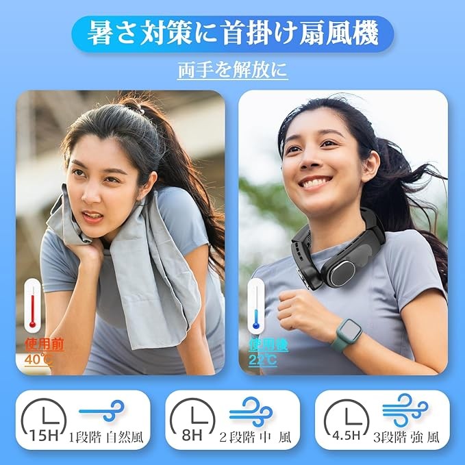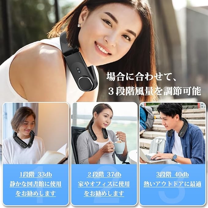 Portable Fan, Neck Fan, Bladeless, Powerful, Neck Fan (Black)