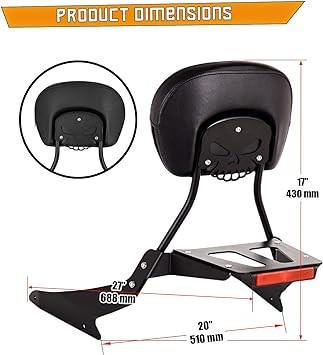 Powersports Sissy Bar with Backrest Luggage Rack for Suzuki Boulevard M109 R with Docking Hardware(Black,Non-Studded)
