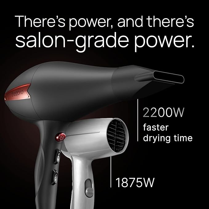 Professional 2200W Ionic Salon Hair Dryer - Professional Blow Dryer - Lightweight Travel Hairdryer for Normal & Curly Hair Includes Volume Styling Nozzle