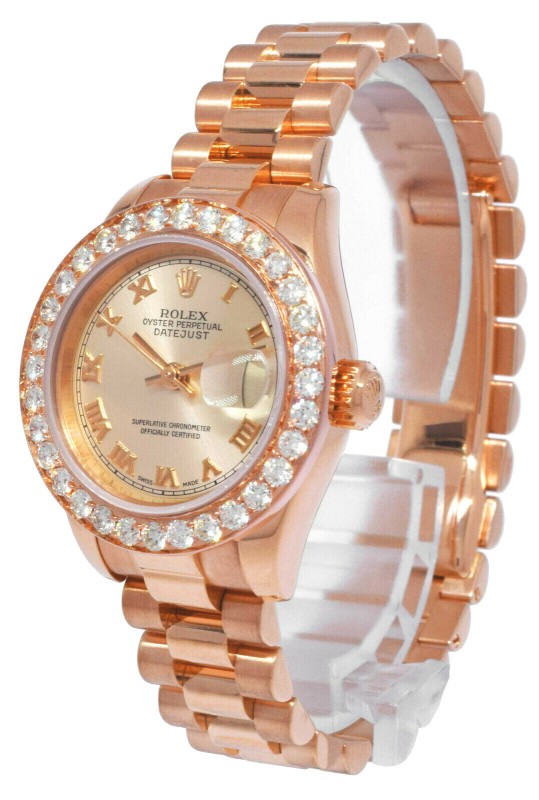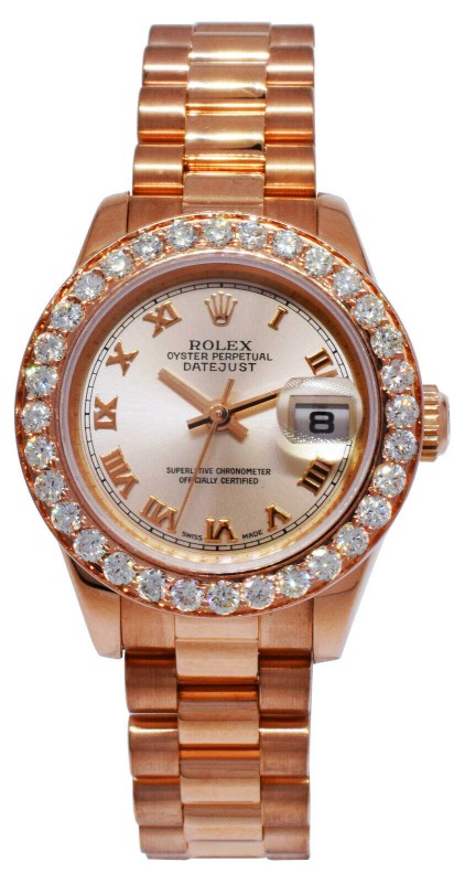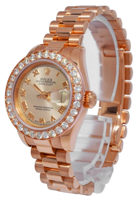 Rolex Datejust President 18k Rose Gold Pink Dial Diamond Bezel 26mm Watch 179175