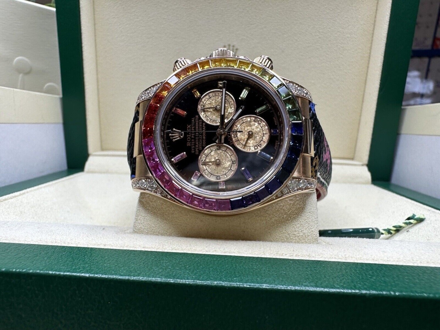 Rolex Rose Gold 116505 Daytona 116595RBOW Rainbow Sapphire Bezel Diamond Lugs