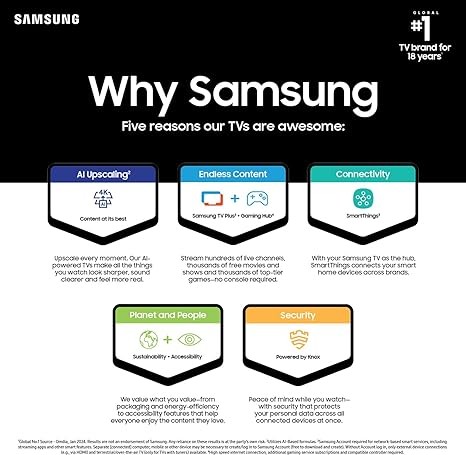SAMSUNG 65-Inch Class Crystal UHD 4K DU7200 Series HDR Smart TV wObject Tracking Sound Lite, PurColor, Motion Xcelerator, Mega Contrast, Q-Symphony, Alexa Built-in (UN65DU7200, 2024 Model)