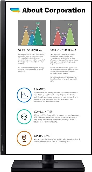 SAMSUNG FT45 Series 24-Inch FHD 1080p Computer Monitor, 75Hz, IPS Panel, HDMI, DisplayPort, USB Hub, Height Adjustable Stand, 3 Yr WRNTY (LF24T454FQNXGO),Black