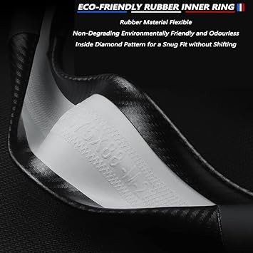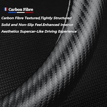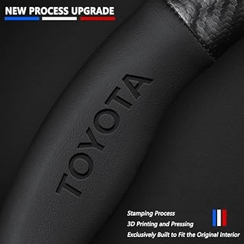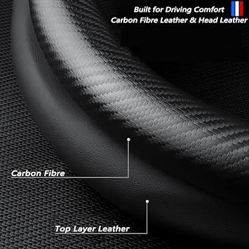 Steering Wheel Cover Compatible with Toyota, Napaa Leather&Carbon Car Steering Wheel Protector, Non-Slip, Breathable, with 2 Coasters and USB Fast Charging Cable (Black)