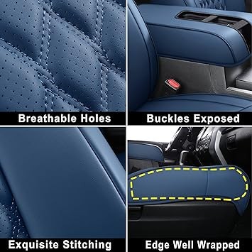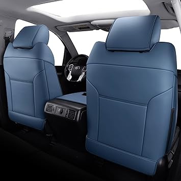 Tundra Seat Covers, Front & Rear Leather Waterproof Car Seat Cushion Protector Fit for 2014-2021 Toyota Tundra CrewMaxDouble Cab Pickup Truck(Full SetPure Blue)
