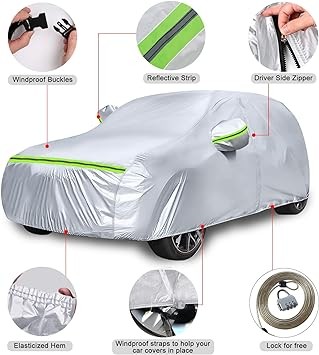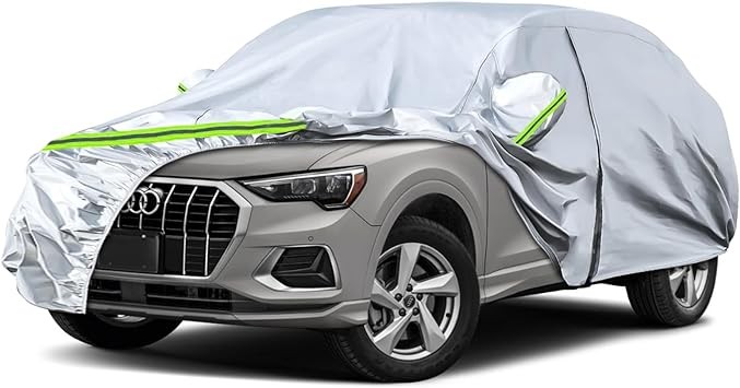 Waterproof Car Covers Replace for 2012-2024 Audi Q3, 6 Layers Silver All Weather Custom-fit Car Cover with Zipper Door & Windproof Bands for Snow Rain Dust Hail Protection
