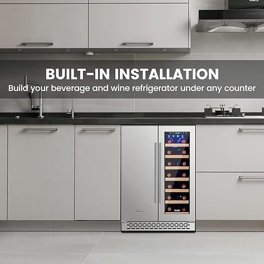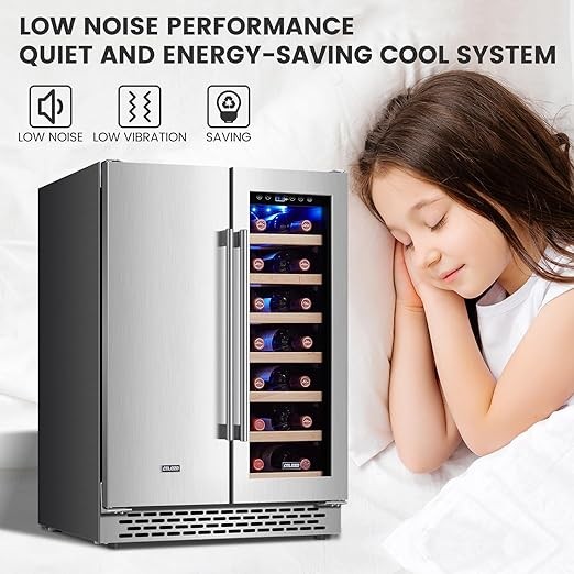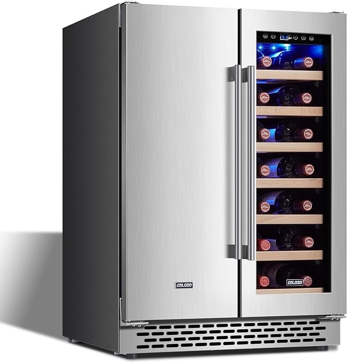 Wine Cooler Beverage Refrigerator, 24” Wine Fridge with Dual-Zone Digital Temperature Control, Glass Front Doors and Interior Lighting Holds 18 Bottles and 57 Cans on Removable Shelves