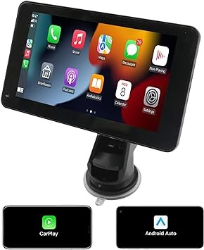 Wireless CarPlayAndroid Auto Touch Screen Car Radio Portable Dash Mount Adapter NavigationMirrorLink HD LRVFMAMVoice Control 7-inch Scree
