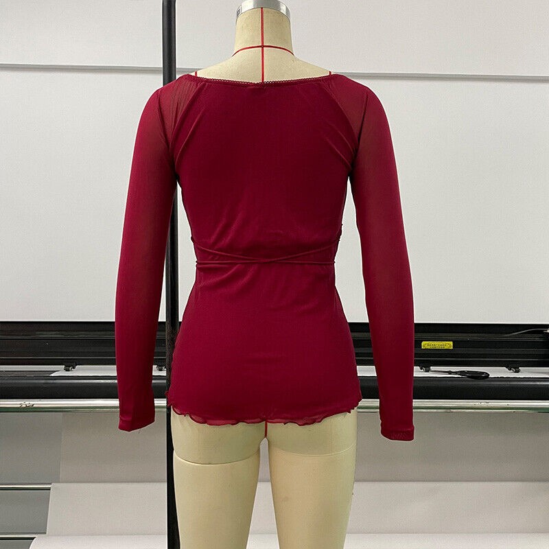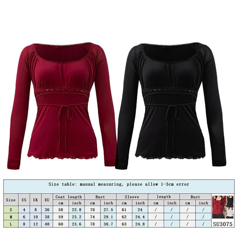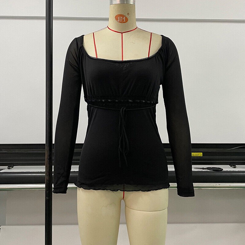 Women Sweet Off Shoulder Drawstring T Shirt Top Long Sleeve Blouse Square Neck