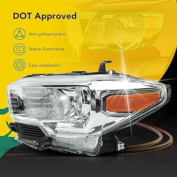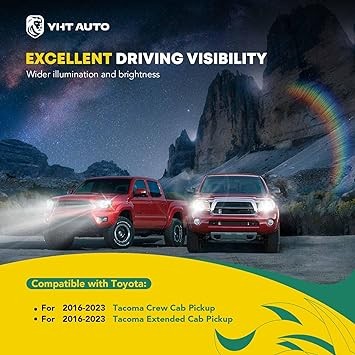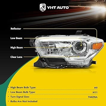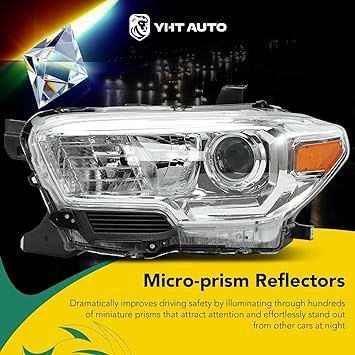 YHTAUTO Set of 2 Headlights Assembly Replacement for 2016-2023 Toyota Tacoma, Driver & Passenger Side Head Lights Lamps, Headlight Clear Lens Chrome Housing Micro-prism Reflector Headlamps